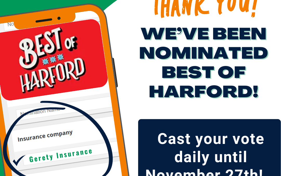 We are excited to announce that Gerety Insurance has been nominated for the 2025 Best of Harford in the Insurance category! This nomination is a true honor, and we need your help to secure the win.