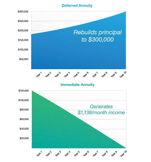 One strategy combines two different annuities to generate income and rebuild principal. Here’s how it works: